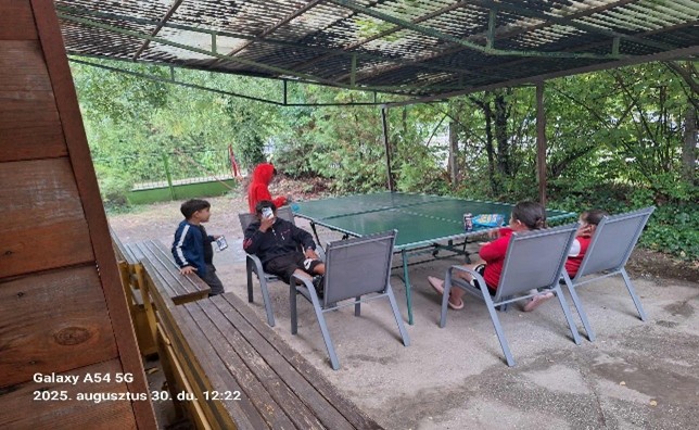 Vacsora után a teraszon kártyáztunk, activityztünk . Lehetőség volt tollasozni, pinpongozni, focizni. A házirendet figyelembe véve 22.00-kor mindenki bevonult a szobájába elalvásig beszélgettek, olvastak a gyerekek.
