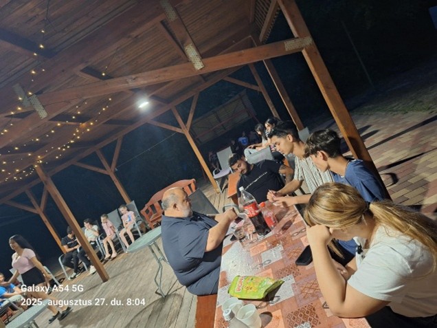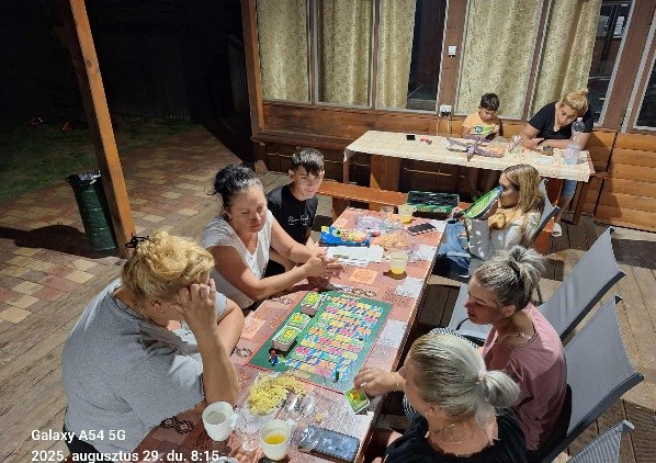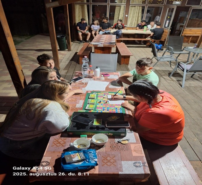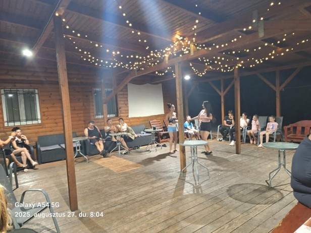 Vacsora után a teraszon kártyáztunk, activityztünk . Lehetőség volt tollasozni, pinpongozni, focizni. A házirendet figyelembe véve 22.00-kor mindenki bevonult a szobájába elalvásig beszélgettek, olvastak a gyerekek.