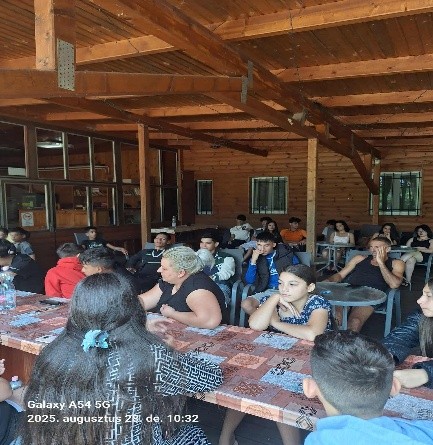 Reggeli ébresztő és a reggelit követően tartottuk meg a drogprevenciós előadást. A nevelőszülői hálózat kérésére , ők is részt vettek az előadáson. Az eltérő korosztályt figyelembe véve állítottuk össze az előadás anyagát. Megnéztük a felkínált videókat és ennek alapján indultunk el.